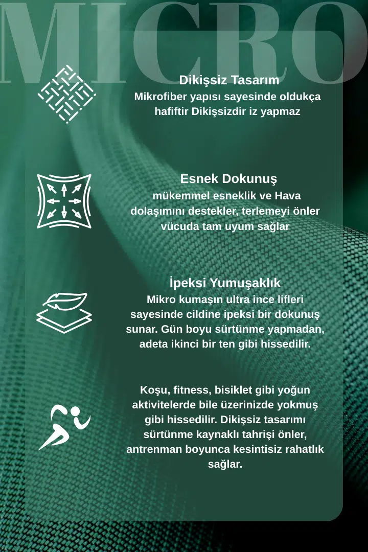 • Kumaş: %90 Mikrofiber Polyester, %10 Elestan